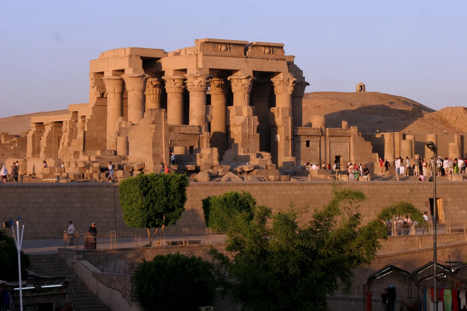 Following your exploration of Edfu, your journey continues for approximately another 1 hour and 30 minutes, covering about 70 kilometers, to the enchanting site of Kom Ombo. Here, you will discover the truly distinctive double temple, a rare architectural phenomenon in ancient Egypt. This temple is symmetrically dedicated to two distinct deities: Haroeris, the benevolent falcon god, and Sobek, the formidable crocodile god. As you wander through its courts and chambers, you’ll encounter a wealth of captivating details, including an ancient Egyptian calendar, intriguing depictions of medical instruments, and vivid scenes illustrating daily life and religious rituals from the Greco-Roman period in Egypt.
