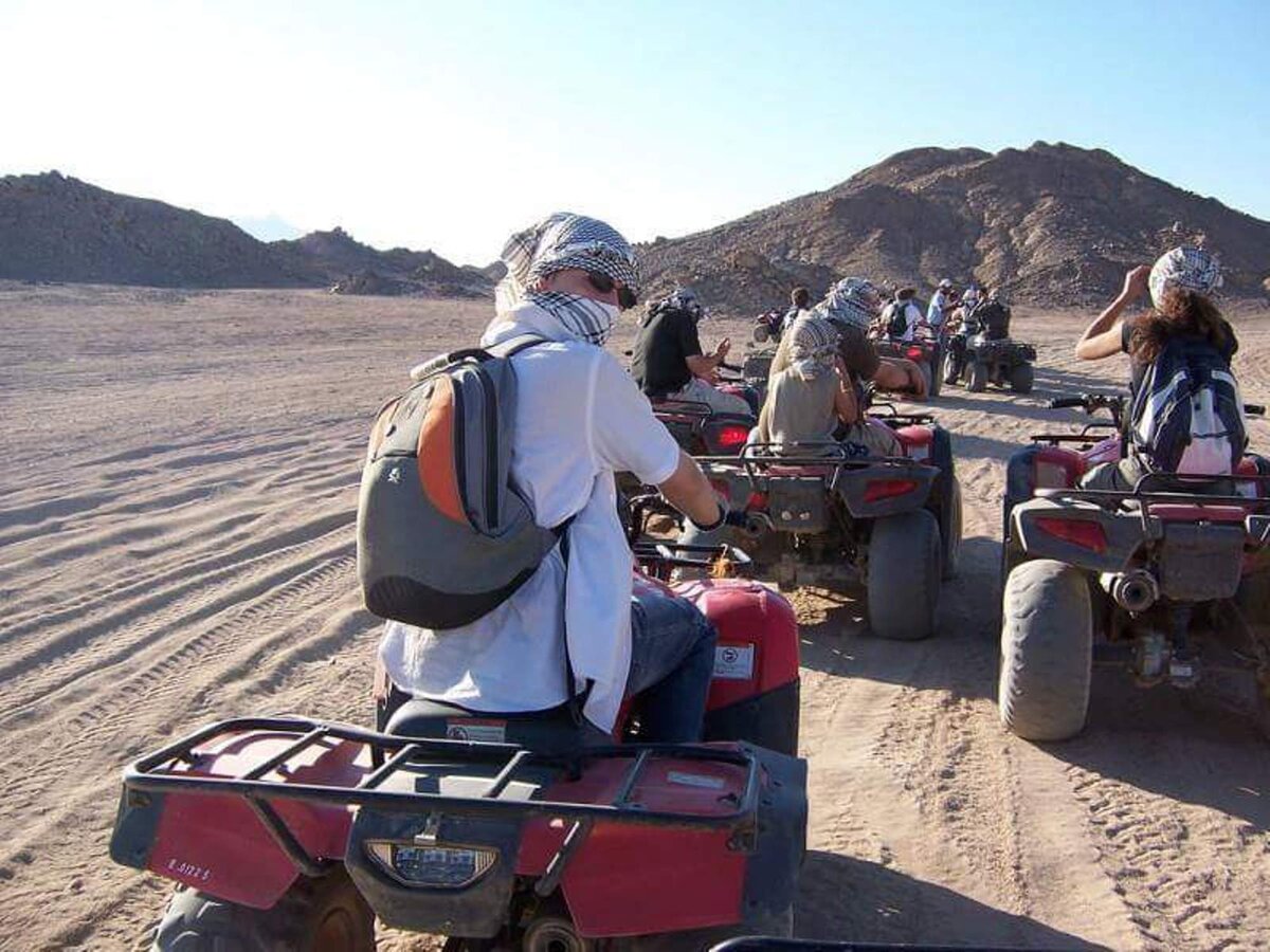 To further immerse yourself, you’ll have the delightful opportunity to savor traditional Bedouin tea and, if you wish, partake in smoking a water pipe (shisha). Following this enriching cultural interlude, you’ll mount your motorbike once more for the thrilling return journey to the quad runner station. Finally, you’ll be seamlessly transferred back to your hotel in Marsa Alam, carrying with you incredible memories of your desert exploration.